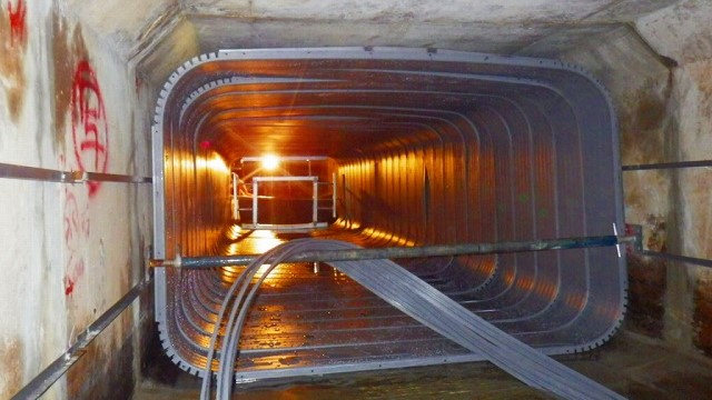 クリアフロー工法は、ダンビー工法のようにスパイラル上に補強するものとは違い、補強鋼材を連結していくことで、管を構成します。